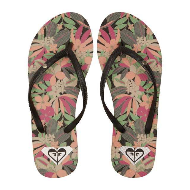 Roxy Bermuda Print Flip Flops - Black/Pink/Soft Lime