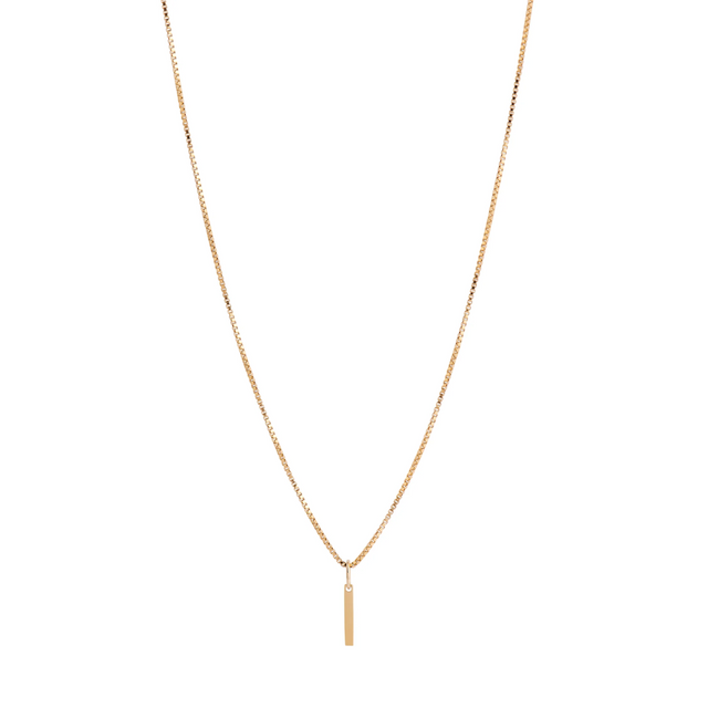 Affichez votre style classique avec notre collier Atticus ! Ce collier minimaliste arbore un pendentif barre en or 14 carats de 10 mm suspendu à une chaîne vénitienne de 45 cm de long et 1 mm d'épaisseur en or rempli 14 carats, pour un look sobre et intemporel.